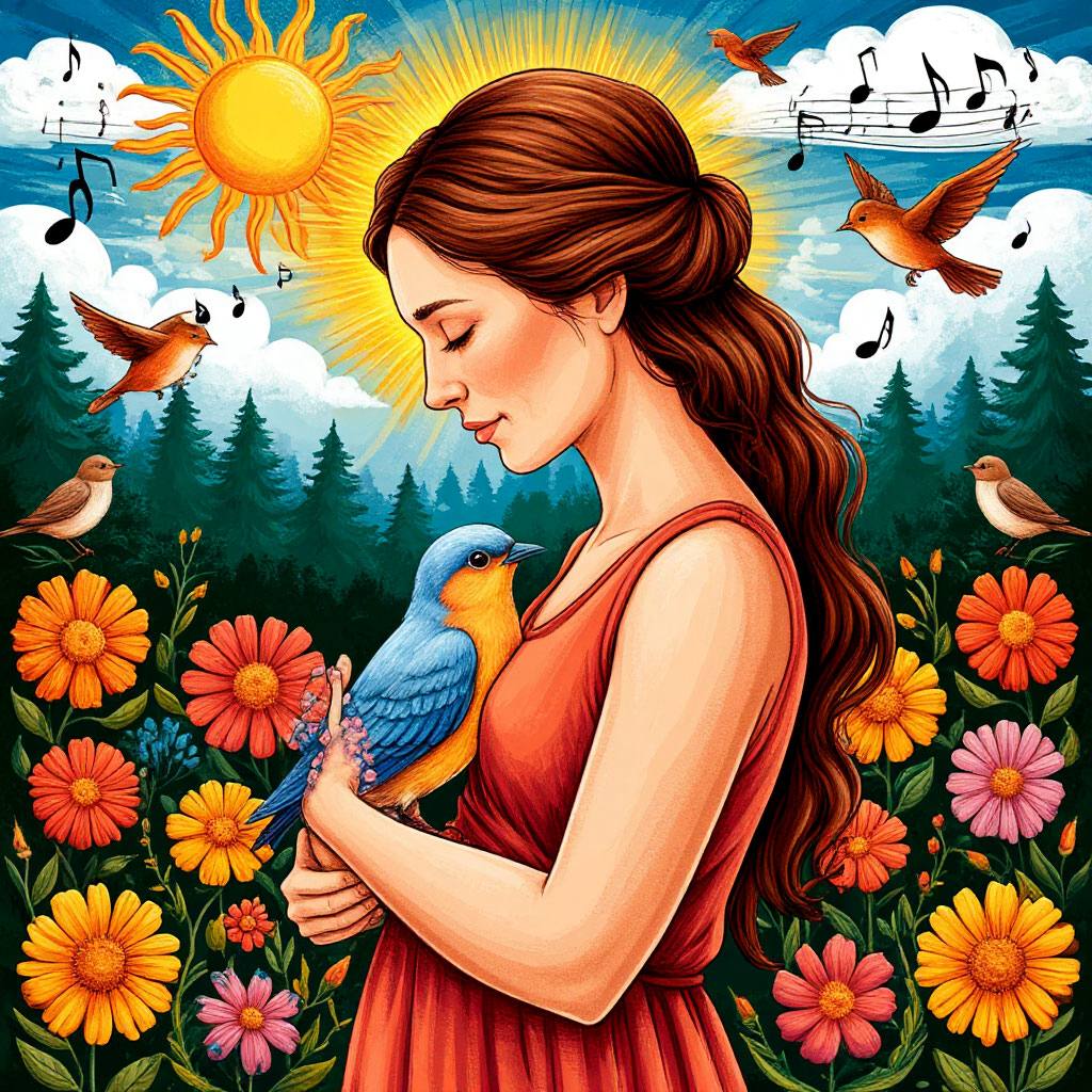 И приснился ей сон: вот она в гнезде, маленькая, кругом бабочки летают, ручейки журчат, деревья качаются, солнышко светит. И прилетела мама – большая, красивая и очень мудрая. Обняла она свою малышку крылышками и говорит: «Милая моя, Невеличка, запомни: когда ты почувствуешь усталость, нужно позаботиться о своем отдыхе. Усталость почувствовать очень просто – каждый час нужно посмотреть в небо, улыбнуться и начать петь. Если песня ладная, значит есть силы. Если трель застряла в горлышке, значит пора отдыхать. Пожалуйста, всегда береги себя.»
